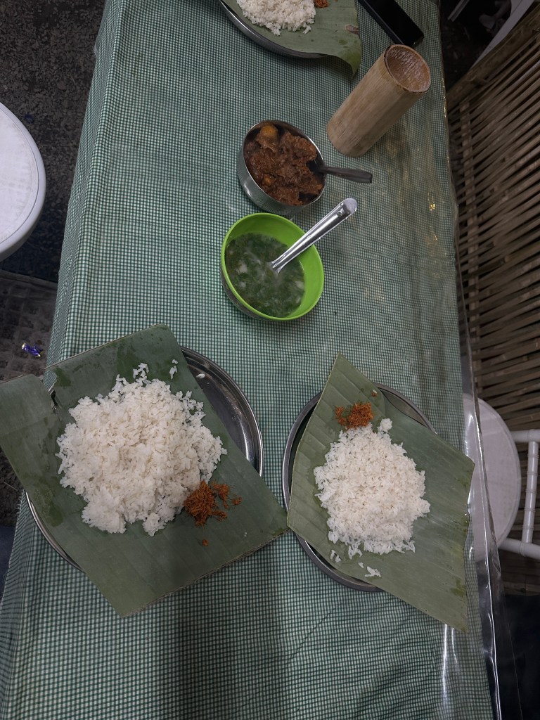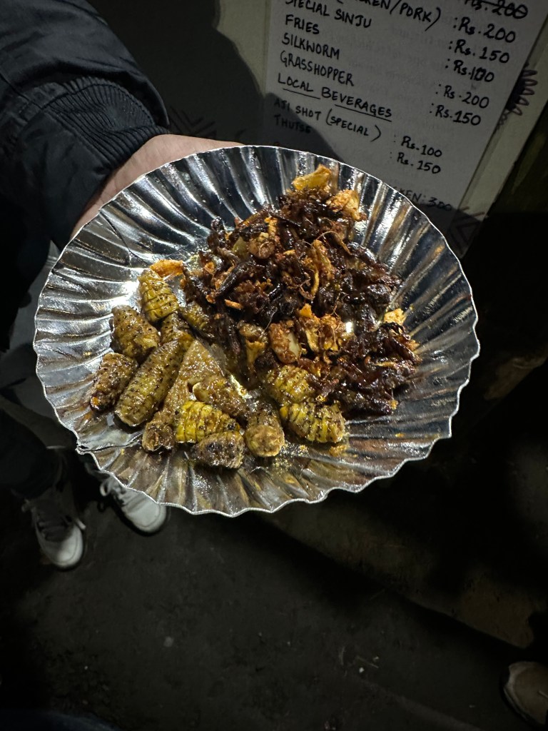 Thanks to Vikho, I also tried a few new things at the Hornbill Festival—silkworms, fried grasshoppers, and steamed pork with rice. To my surprise, I really enjoyed the grasshoppers. I swallowed them with ease! Silkworms were tougher—I couldn’t finish them, but I did chew more than half. We also tried local rice beer (which was quite strong!) and ended up taking a couple of shots with a group of girls. Fun, unexpected, and unforgettable.