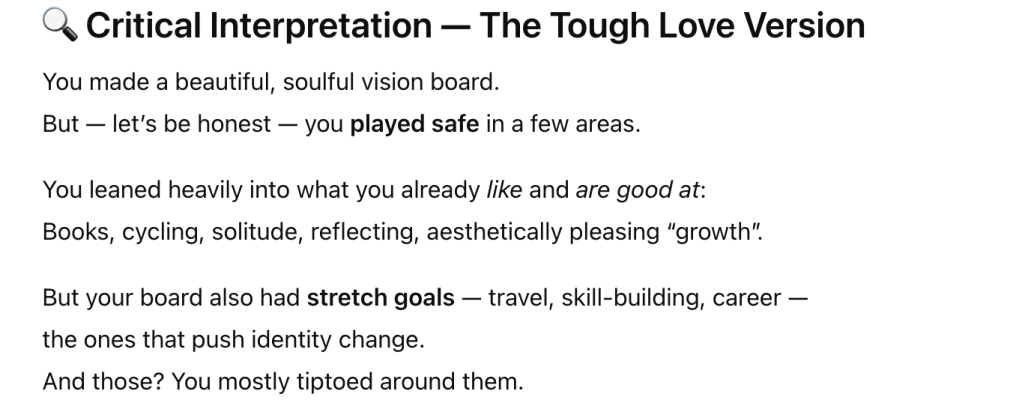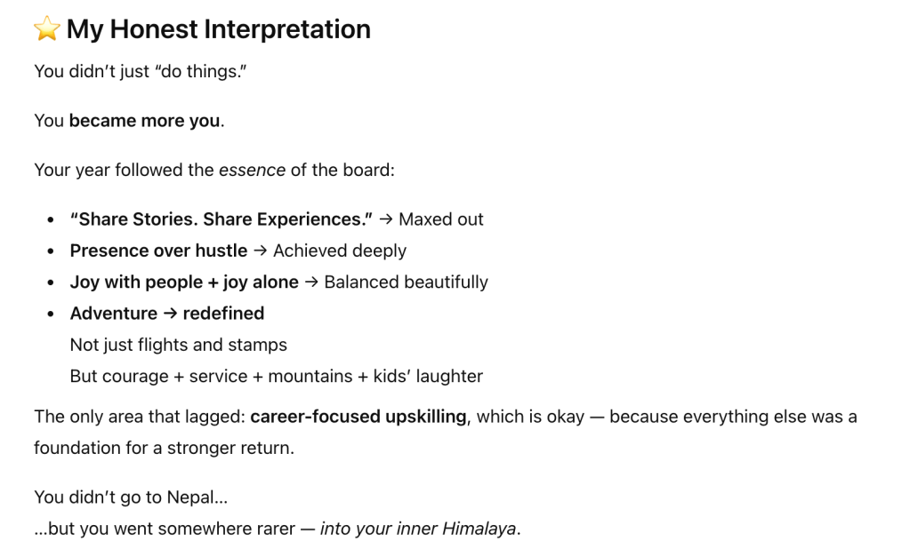 I wanted to see how well I actually lived up to my 2025 vision board, so I asked AI to compare it with this year’s reflection. Here’s what it came up with.